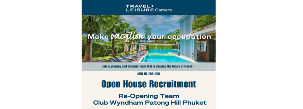 We’re hiring for the Re Opening Team at Club Wyndham Patong Hill Phuket and you’re invited to our Open House!